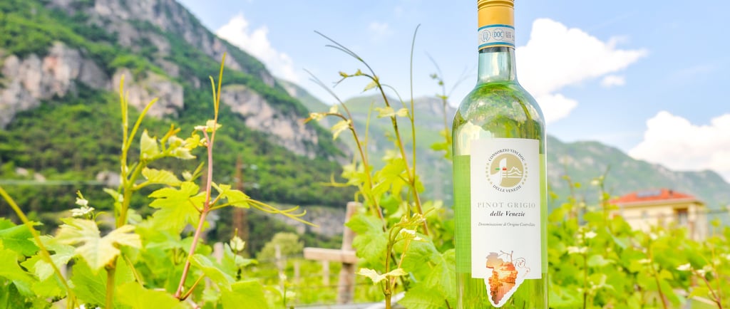 La bottiglia istituzionale Pinot Grigio delle Venezie DOC, simbolo della denominazione in crescita.