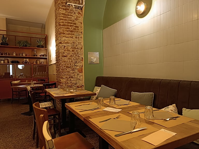 Cosa offre la cucina del locale? Un menù senza liste interminabili di portate, 3 antipasti, 3 primi, 3 secondi e un paio di dolci ma che cambiano quotidianamente, quindi si può ripassare e trovare nuovi spunti. Un paio di piatti icona (lo spaghetto al pomodoro e la quinoa con verdurine) rimangono sempre, a grande richiesta, il resto segue le stagioni e l’ispirazione: prevalentemente carne e tante verdure (anche con piatti esclusivamente vegetali).